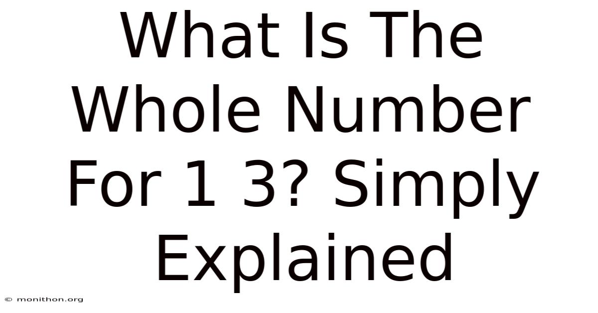 Let's get real. Practically speaking, when someone asks "what is the whole number for 1/3," they're usually looking for a simple, clean answer. But math doesn't always work that way. And that's actually a good thing. Understanding why 1/3 can't be a whole number opens up a whole world of mathematical thinking Small thing, real impact..
