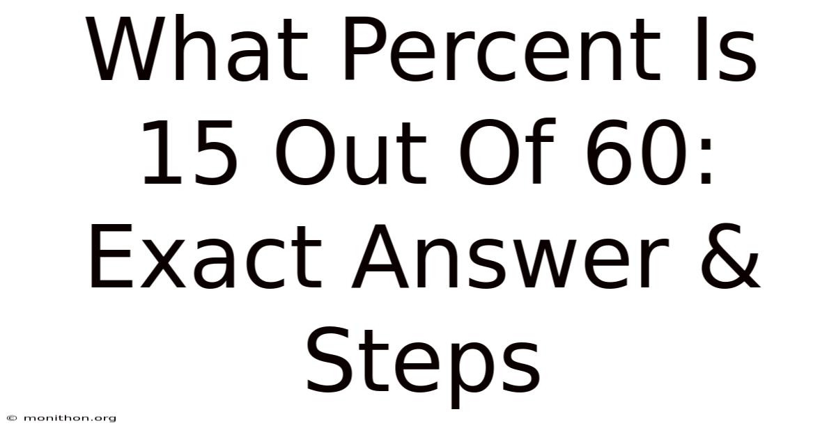 Ever stared at a math problem and thought, “Do I really need a calculator for this?Practically speaking, ” You’re not alone. The question “what percent is 15 out of 60?Also, ” pops up more often than you’d expect—whether you’re budgeting, grading, or just trying to figure out a discount. The short answer is 25 %, but the story behind that number is worth a few minutes of your time.
