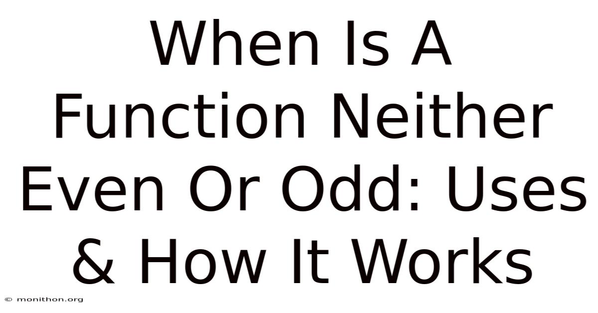 You’ve probably seen the rules for even and odd functions. Plug in −x. But what happens when neither rule clicks? That’s exactly when you’re figuring out when is a function neither even or odd. Check if it flips or stays the same. And honestly, it’s way more common than textbooks let on Most people skip this — try not to..