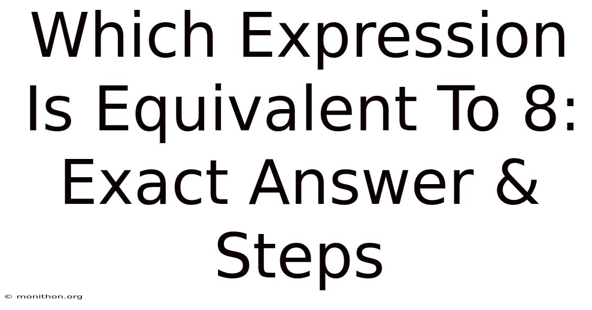 Which expression is equivalent to 8? At first glance, it sounds like a simple math question. But the truth is, there are dozens of ways to write "8" depending on what you're working with—fractions, decimals, exponents, roots, or even algebraic expressions. And that's exactly what makes this question interesting.