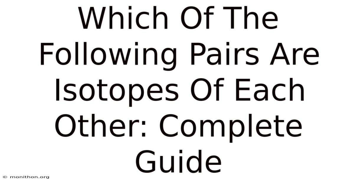 When a question asks which of the following pairs are isotopes of each other, it’s testing your ability to compare mass numbers and atomic numbers. Because of that, most folks know that isotopes share an element symbol, but they sometimes forget the neutron count must differ. That’s the subtle twist that separates a correct answer from a near‑miss Surprisingly effective..
