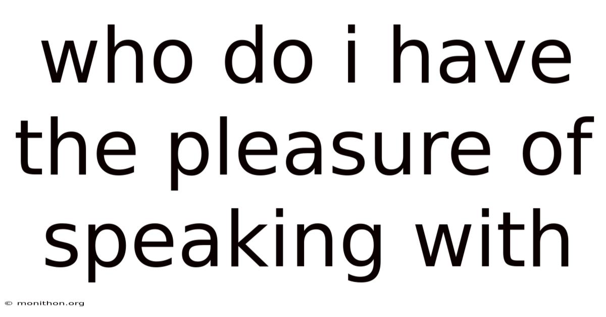 Who Do I Have The Pleasure Of Speaking With