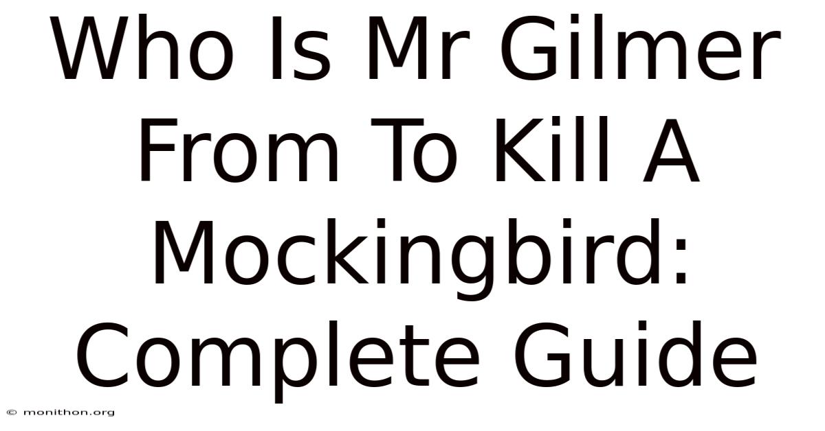 So, who is Mr. His presence challenges the reader to think about morality, perspective, and the human condition. In practice, he’s a complex, multifaceted character who adds depth to the narrative. Here's the thing — gilmer in To Kill a Mockingbird? While he may not be the most famous character, his contributions are significant.