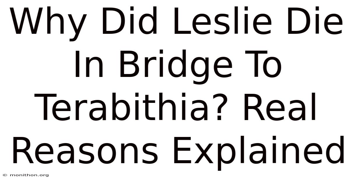 Leslie’s death in Bridge to Terabithia isn’t a dramatic plot twist for shock value; it’s a quiet, realistic accident that forces Jess—and us—to confront loss head‑on. Here's the thing — the rain‑slick rope bridge, the swollen creek, the sudden splash—these details feel ordinary, and that’s exactly why they strike a chord. By grounding the tragedy in everyday reality, Paterson invites readers to see grief not as a distant, abstract concept, but as something that can hit even the most magical of childhood kingdoms And that's really what it comes down to..