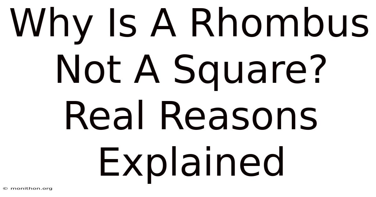 A rhombus isn't a square because a square demands something a rhombus doesn't have to give: perfect 90-degree corners. The equal sides alone aren't enough. Think of it this way — a square is a rhombus that went the extra mile and decided to have right angles too.