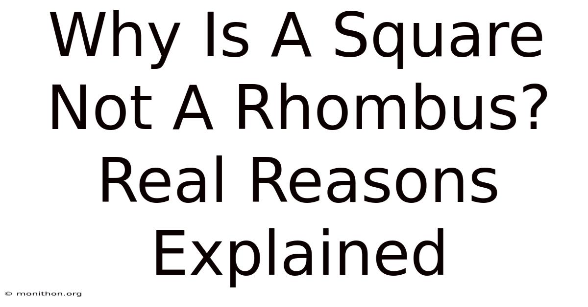 Here's the simplest way to think about it: a rhombus is defined by its sides, and a square is defined by its sides and angles. Which means since the square meets the side requirement, it automatically qualifies for the rhombus club. It just also happens to meet the angle requirement, which makes it a VIP member with extra perks It's one of those things that adds up..