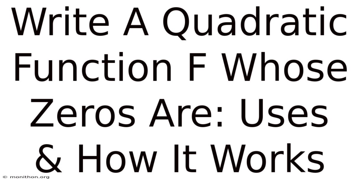 What does it really mean to write a quadratic function whose zeros are specific numbers? Consider this: if you've ever stared at a math problem like this, you're not alone. It sounds simple — but there's a trick to getting it right every time.