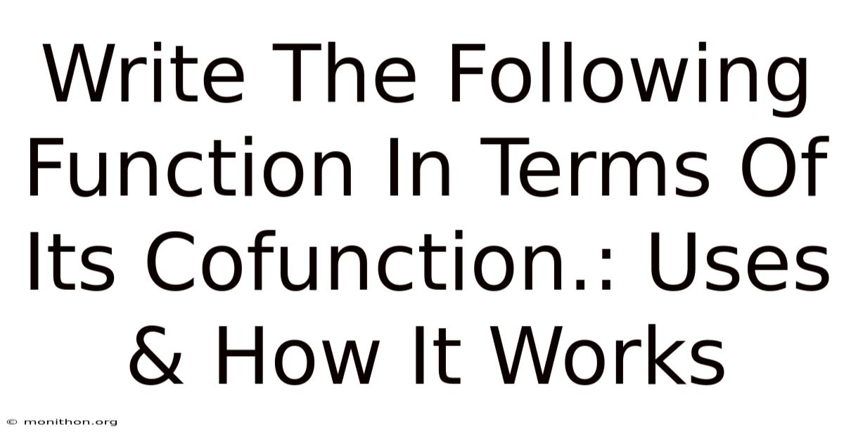 Here's the thing — the phrase "write the following function in terms of its cofunction" sounds fancy, but it's really just asking you to do one simple thing: switch a trig function to its partner function using a specific angle relationship. Once you see the pattern, it'll click. I promise.