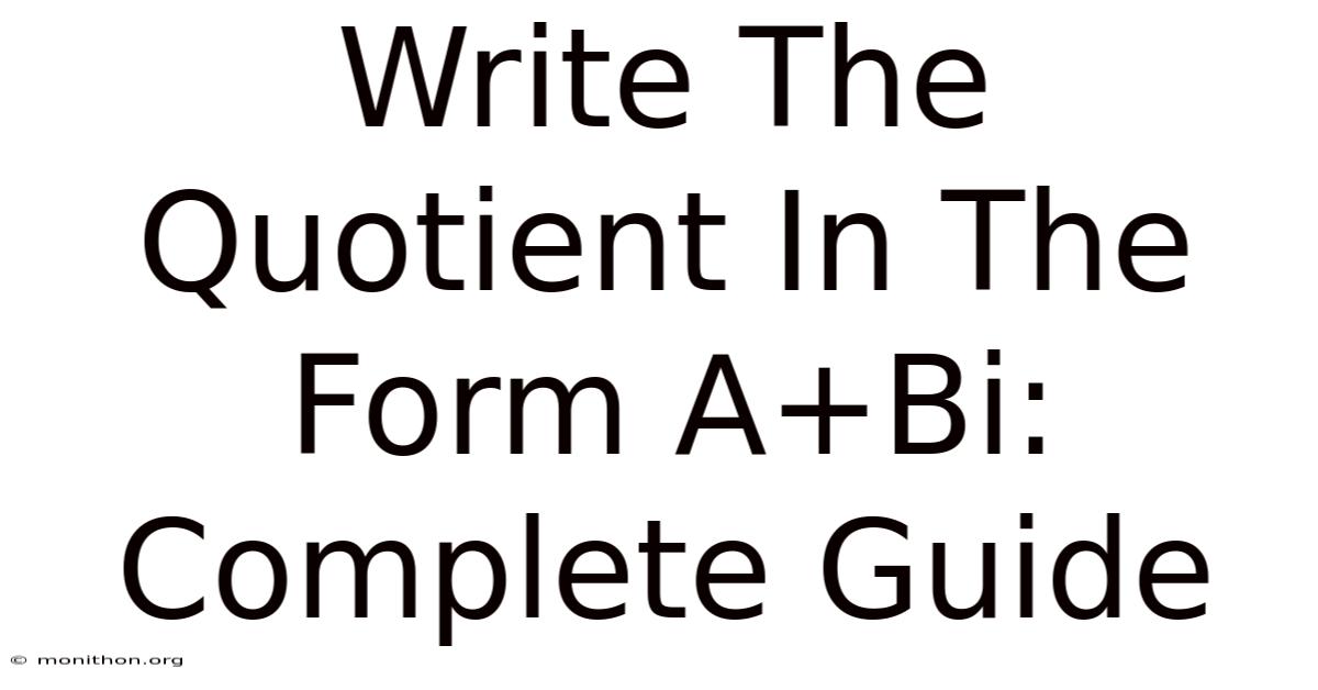 You might be wondering, what exactly does it mean to write a quotient in the form a+bi? Well, let's break it down. In most cases, especially when dealing with complex numbers, the quotient of two numbers can indeed be expressed as a plus or minus a bi term. But why does this matter? Because it gives you a clearer picture of what the result looks like — not just a single number, but a complex number with both real and imaginary parts Which is the point..
