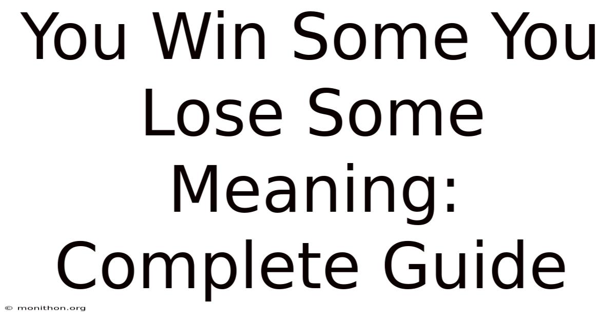 First, let’s clear the air. "You win some, you lose some" isn’t about not caring. So naturally, it’s not an excuse to be mediocre or to stop trying. That’s the cheap, lazy interpretation—the one that makes you roll your eyes But it adds up..